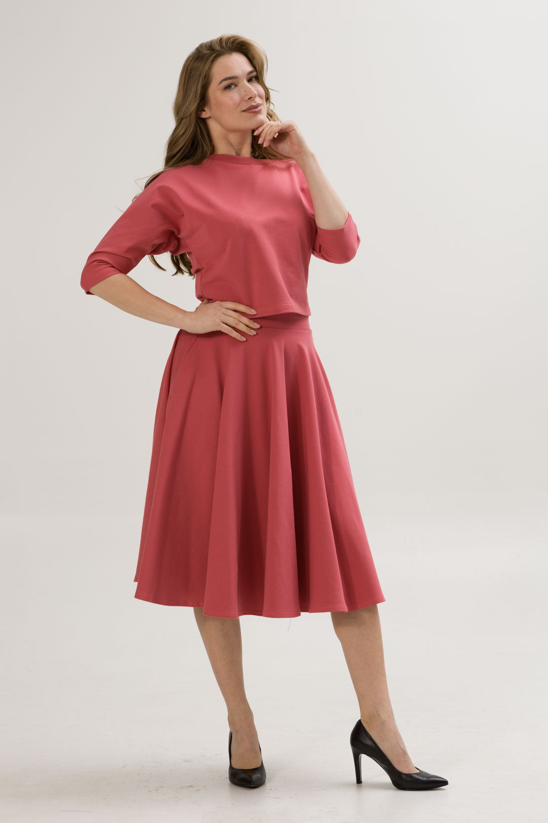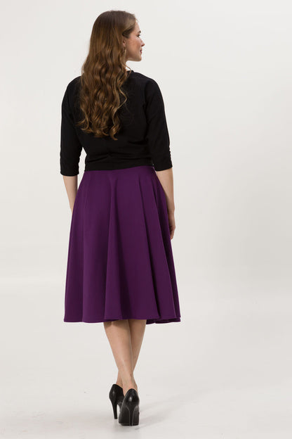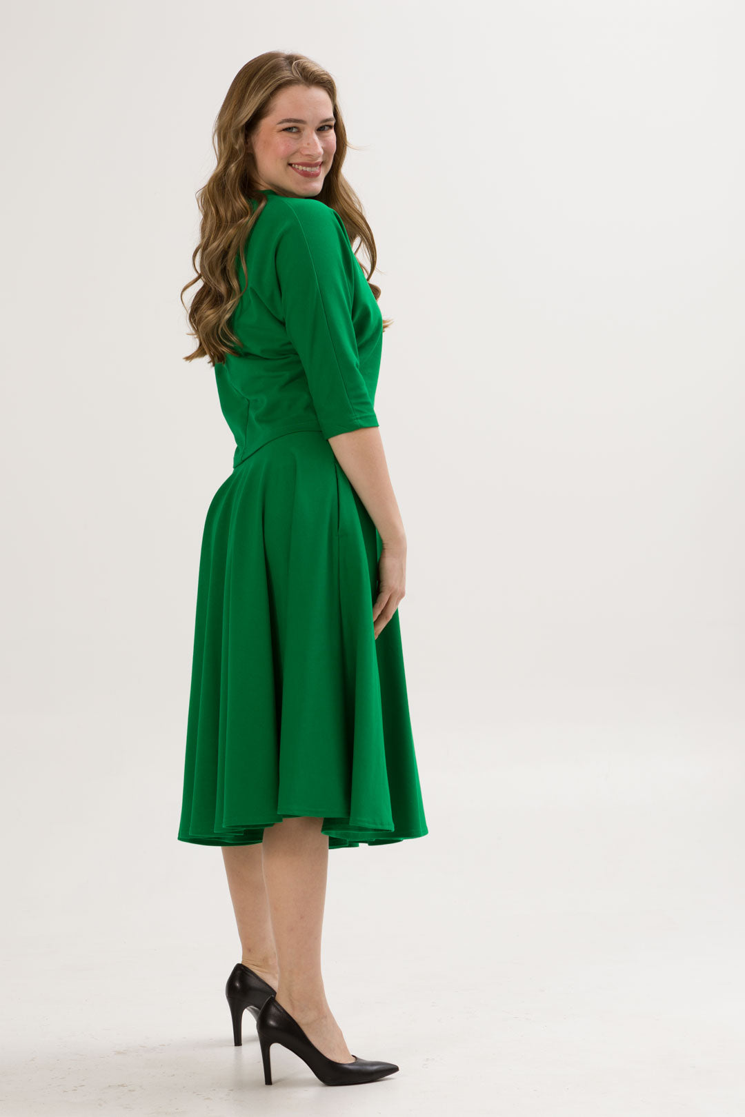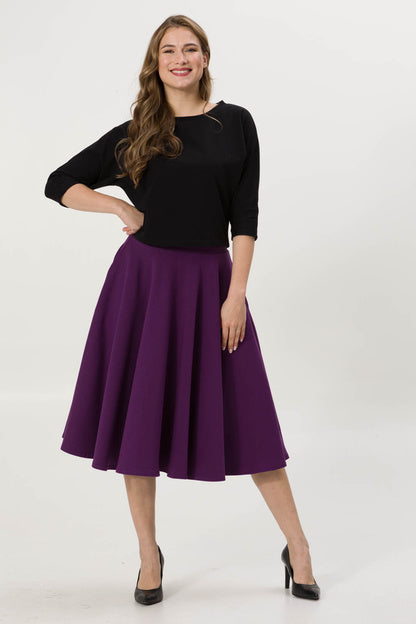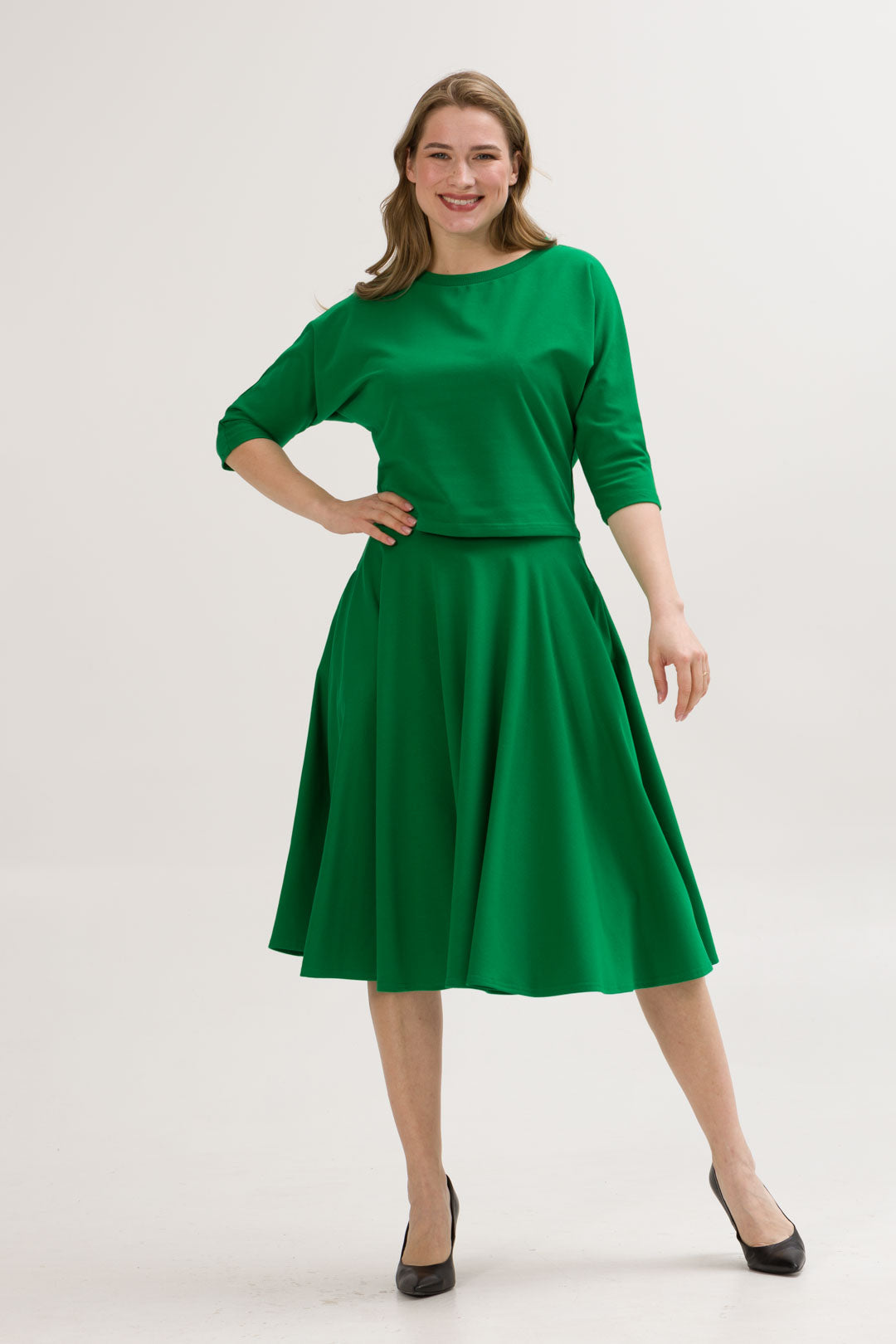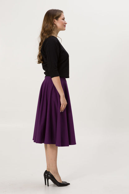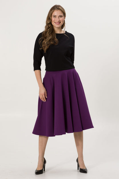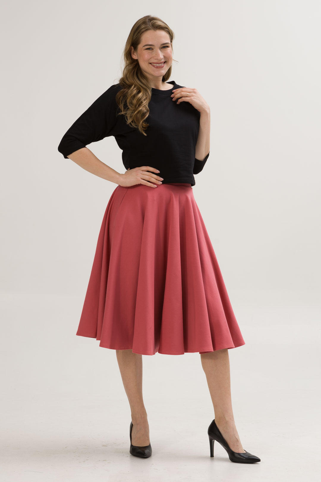 - To klasyczna spódnica z pełnego koła, sięgająca za kolano – nieodzowny element garderoby każdej kobiety ceniącej styl i funkcjonalność. Dzięki temu modelowi zawsze znajdziesz idealną stylizację na każdą okazję.