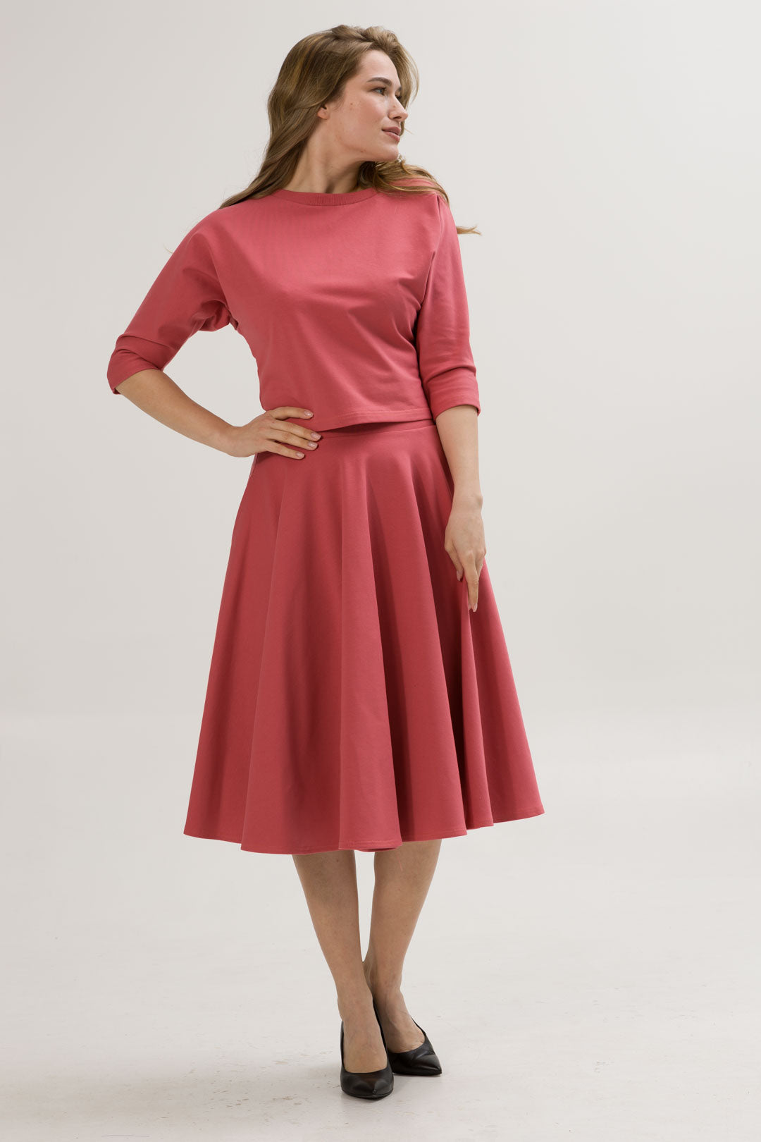 Możesz połączyć spódnicę ARLES z bluzką YOKO w tym samym kolorze, tworząc efekt sukienki – prosty, ale niezwykle efektowny. Dodaj marynarkę, aby uzyskać elegancką stylizację w komfortowym, bawełnianym wydaniu.