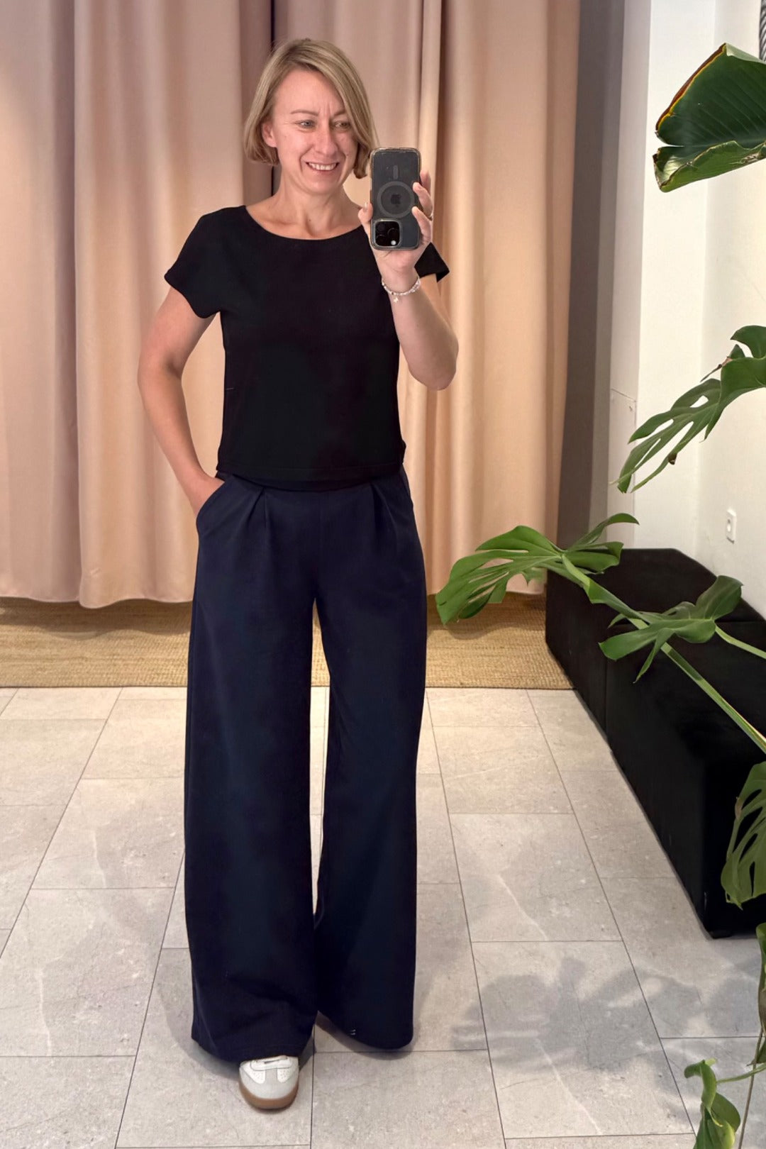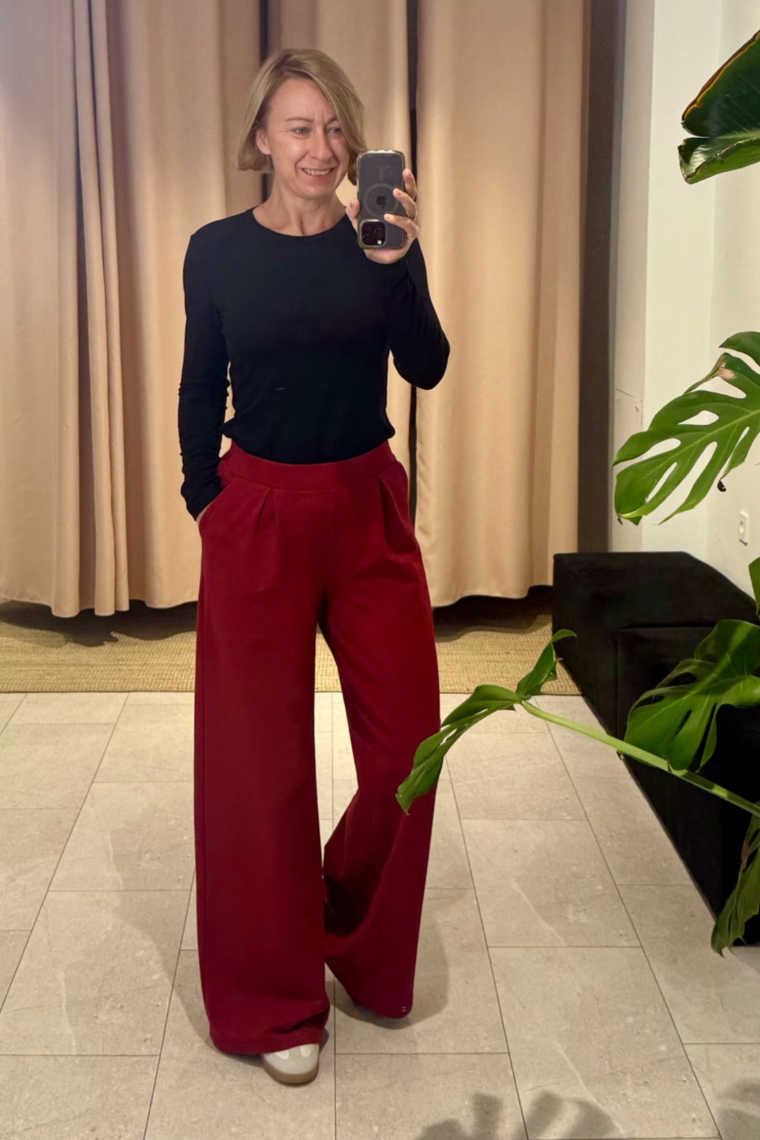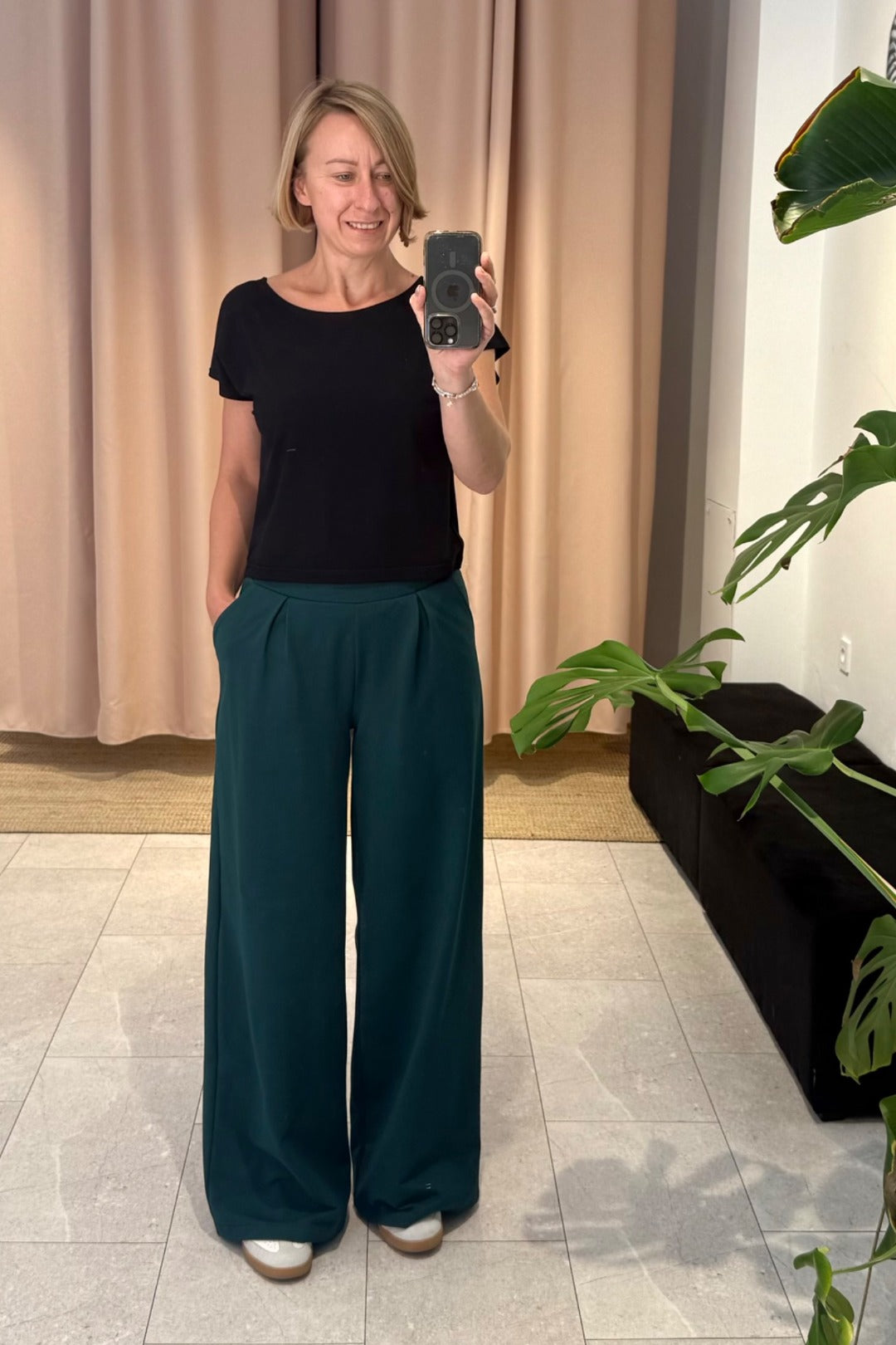 - Spodnie LEA to idealny wybór dla kobiet, które cenią klasyczną formę w nowoczesnym wydaniu. Szerokie, proste nogawki optycznie wysmuklają sylwetkę, a kontrafałda z przodu dodaje elegancji i zapewnia więcej swobody w biodrach. To fason, który łączy wygodę z subtelną kobiecością.