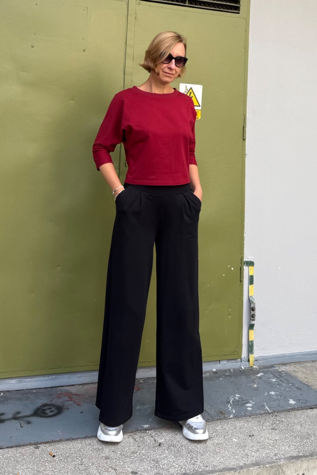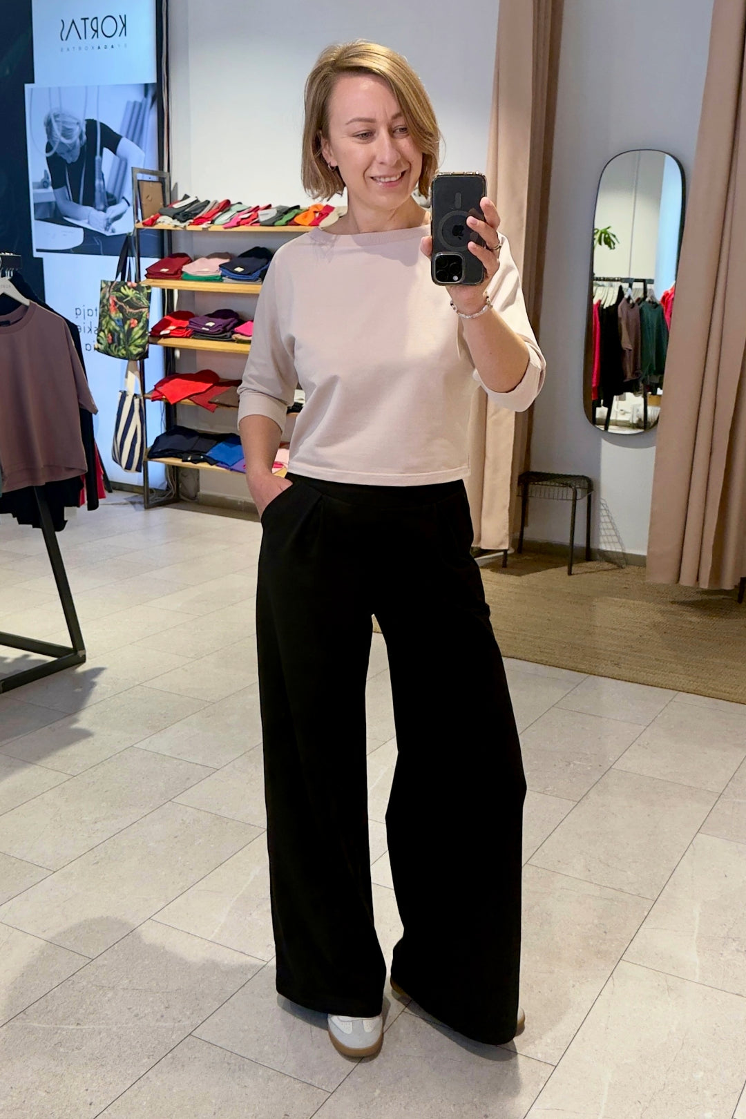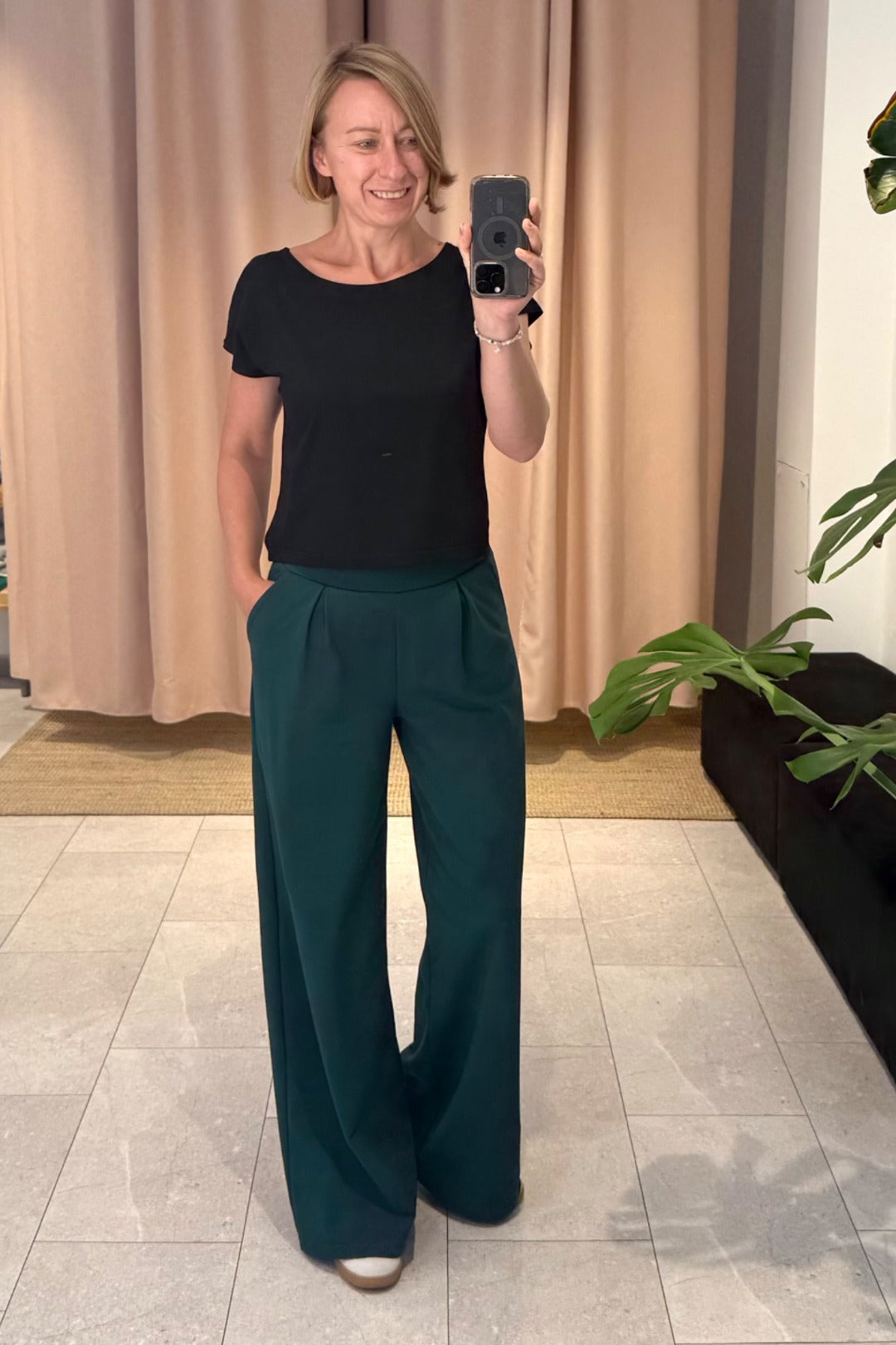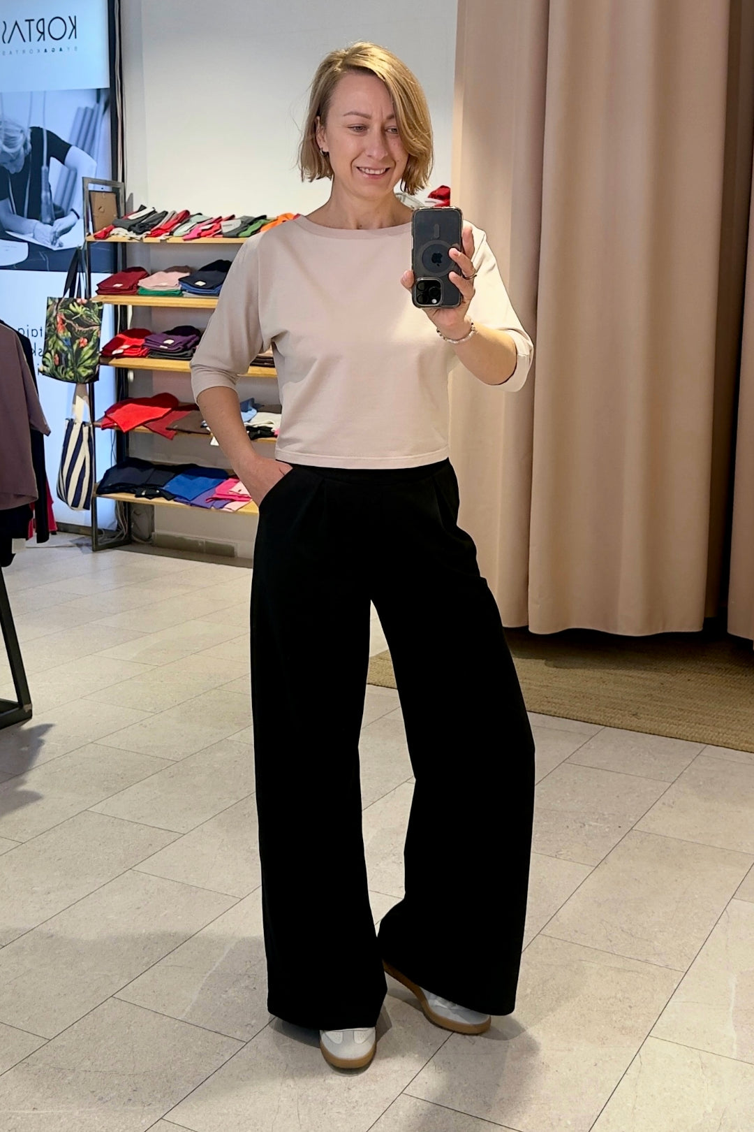 - Spodnie LEA to idealny wybór dla kobiet, które cenią klasyczną formę w nowoczesnym wydaniu. Szerokie, proste nogawki optycznie wysmuklają sylwetkę, a kontrafałda z przodu dodaje elegancji i zapewnia więcej swobody w biodrach. To fason, który łączy wygodę z subtelną kobiecością.